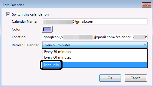 - U kunt de interval voor synchronisatie handmatig selecteren langs Refresh Calendar.
