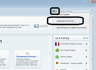 - Klik op het tandwielpictogram en klik op Install Add-on From File. Browse naar de folder waar het .xpi bestand is opgeslagen en klik op Open.